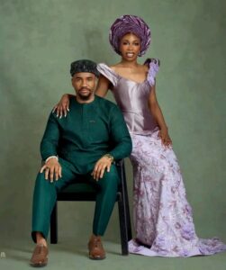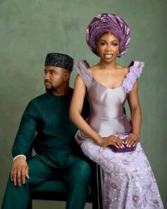While the actor made a statement in his royal green shirt and trousers, his beautiful partner dazzled in a lilac purple attire, which she blended with a stylish ‘gele.’